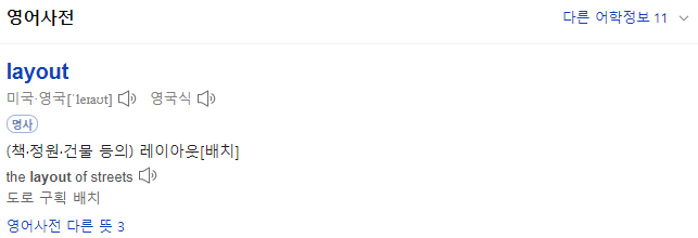 네이버 사전에서 "layout"을 검색하면 [배치]라는 의미가 나옵니다. 앞에서 언급한 바와 같이 layout은 위젯을 "배치" 하는 것 인데요. PyQt에서 가장 많이 이용하는 layout의 종류로는