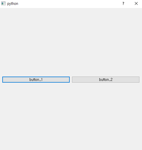 위 코드는 가장 간단한 형태의 QHBoxLayout의 사용법 입니다. 만일 button_1과 button_2를 나란하게 수평방향으로 배치하고 싶다면, QHBoxLayout을 사용하면 됩니다. QHBoxLayout을 생성하고, 미리 생성한 button_1과 button_2를 addWidget을 통해서 layout에 추가합니다. 세 개 혹은 그 이상 원하는 만큼의 위젯을 addWidget을 통해 하나의 레이아웃에 포함시킬 수 있습니다.