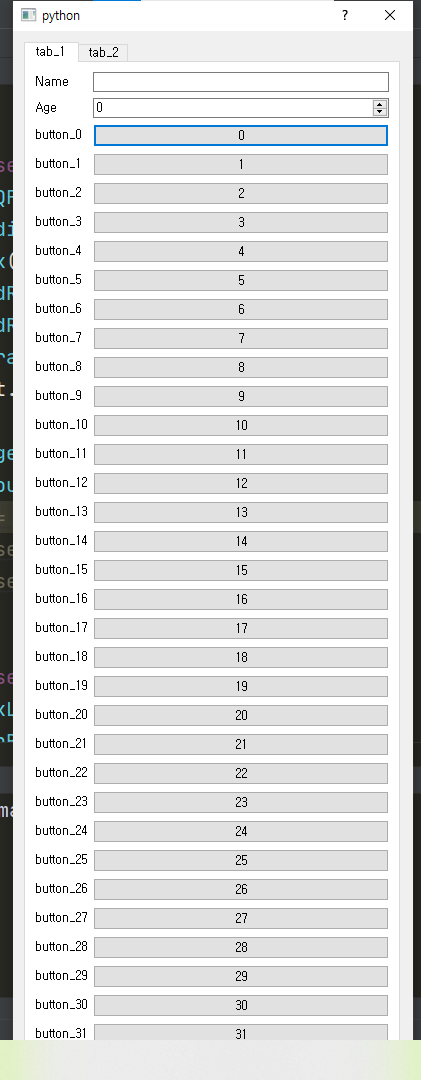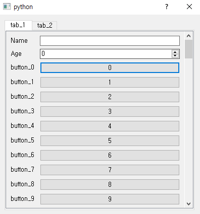 formlayout.addRow("Age", age) # ScrollArea에 설정할 레이아웃을 생성