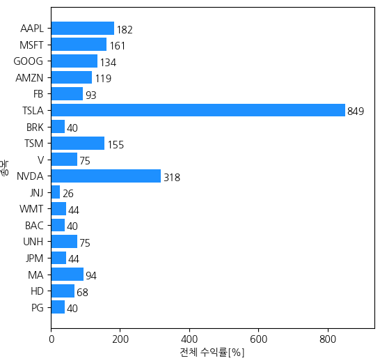 대상 기업 : 미국 주가 상위 19개 기업