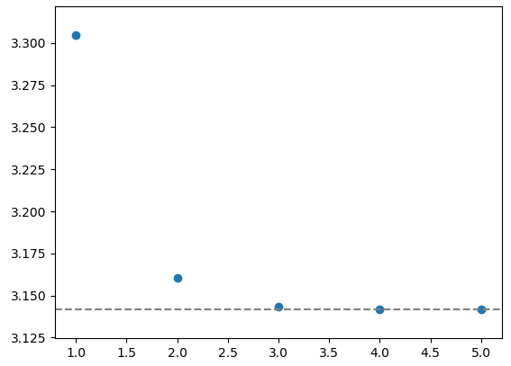 결과는 위와 같습니다. 각 경우 구해진 $\pi$값은