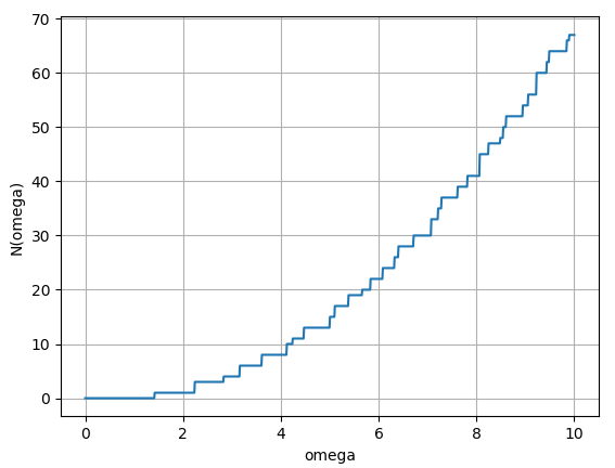 $$N(\omega) = n\Big(\{ \omega(n_x, n_y) | \omega >\omega(n_x, n_y), n_x, n_y = 1, 2, 3, ... \} \Big)$$