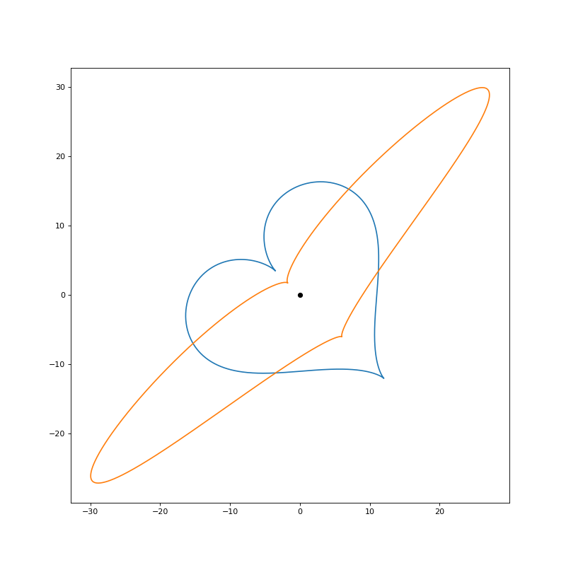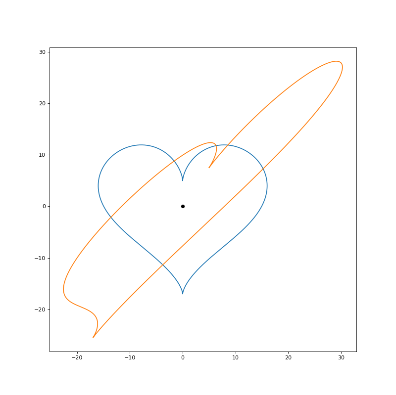 파란색 하트 그림은 행렬 A에 의해서 주황색과 같은 모양으로 변환됩니다. 만일 이 하트를 45도 회전 시킨 하트를 변환 시키면 어떻게 될까요?