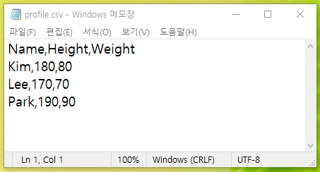 우선 테이블에 표시할 데이터가 필요한데, 위와 같이 매우 간단한 데이터를 csv형식으로 준비하였습니다. Pandas DataFrame을 자주 사용하시는 분이라면 익숙할 데이터의 형식입니다.
