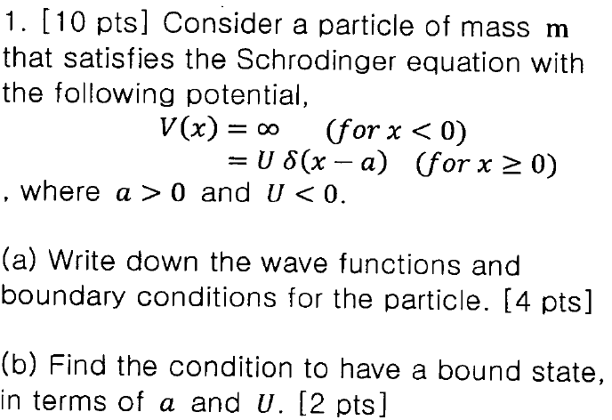 1차원 델타 함수가 나오는 양자역학 문제를 하나 풀어 보도록 하겠습니다.