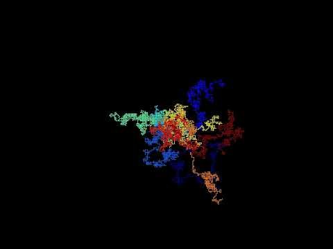 위 에니메이션은 동시에 3개이 랜덤 워크를 구현하였습니다. RGB의 경로가 생성됩니다.
