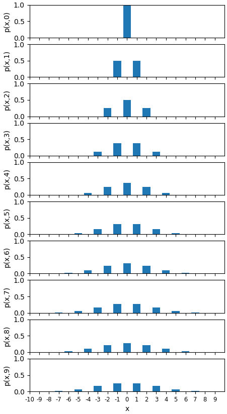 | 무작위 걸음(랜덤 워크 random walk) 103 : 주방정식(Master equation)을 이용한 시간에 따른 랜덤 워크의 확률 밀도 함수 계산 (0) | 2022.05.07 |